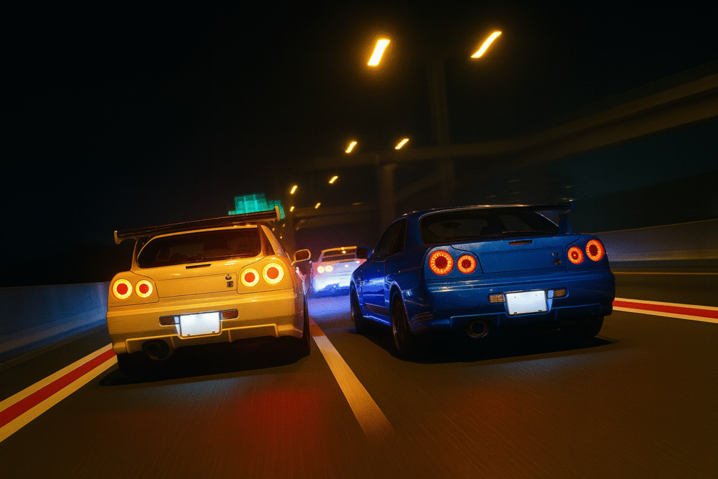 - Night View + Car Culture – Tokyo’s skyline meets JDM heritage.